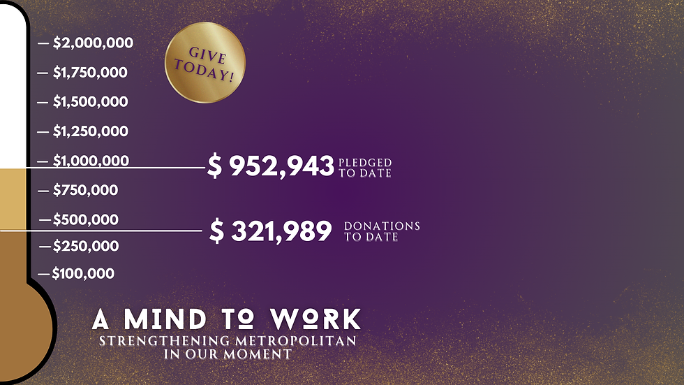 We must liquidate the mortgage we assumed several years ago to restore the beauty and physical health of our beloved Metropolitan. Once free, we will have additional energy and resources to further our work to make manifest God’s reign here on earth.